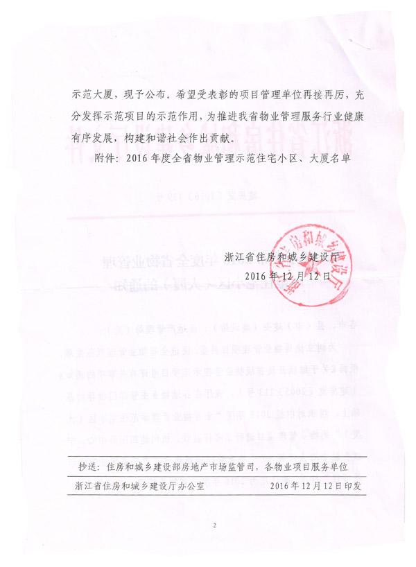 經(jīng)過(guò)漫長(zhǎng)的等待、整改、復(fù)評(píng),直至2016年12月15日,我們終于收到了省住建廳授予樂(lè)清農(nóng)商銀行“全省物業(yè)管理示范大廈”的榮譽(yù)獎(jiǎng)牌及文件。做為樂(lè)清唯一一家榮獲省優(yōu)項(xiàng)目的企業(yè),相信拿到獎(jiǎng)牌那一刻麗潔的全體員工及業(yè)主們都會(huì)為此感到自豪。
