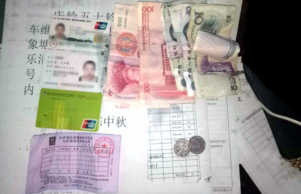 包內(nèi)有現(xiàn)金397元、身份證、銀行卡、市民卡、醫(yī)院病例等物品。