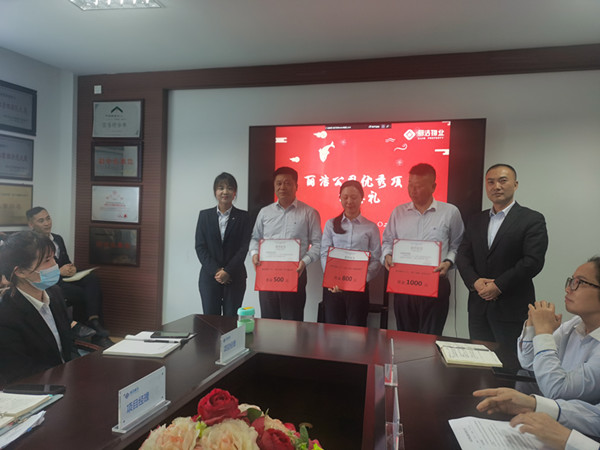 常務副總與品質副總為以上獲獎的項目頒發榮譽證書及獎金,并在會上對三位項目經理提出表揚,感謝他們在日常工作中對公司任務的高度配合,在為業主提供高質量服務的同時,積極打造高效團隊,努力提升員工幸福感與滿意度。同時希望其他項目能向優秀項目看齊,夯實項目品質,增強溝通,用心服務,與業主方融為一體,為公司管理再創佳績。