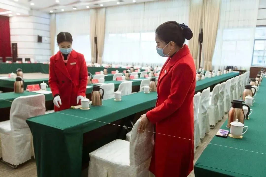 值得一提的是,兩會期間,除了為兩會主、分會場提供高質會務保障,其他各項日常會議在特殊時期皆未受到影響,仍能如期高標準進行。據不完全統計,兩會期間,麗潔服務共計保障各類會議近200場,日排會高峰近50場,日均服務與會人員近4000人次。行政管理中心的60余個會場幾無空場。